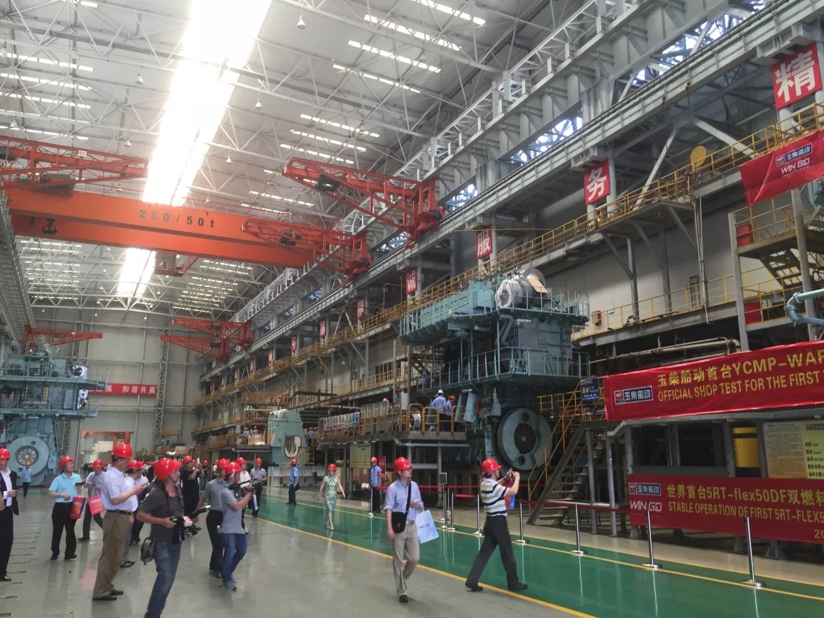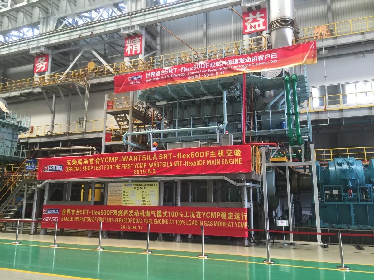 世界首台5RT-flex50DF双燃料发动机燃气模式下的成功动车同时验证了玉柴船动建设的试车台架天然气供给系统的稳定性。这一里程碑的事件标志着玉柴船动成为全球第一家成功生产低压双燃料船用低速发动机的主机厂,标志着玉柴船动向专业化、世界先进的造机企业又迈出了一步。